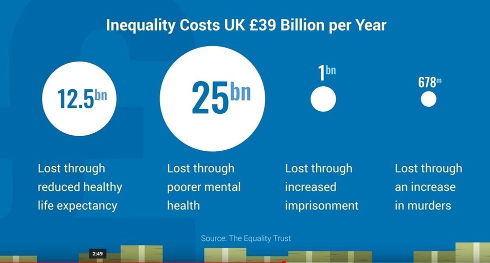 Fry explains that inequality, not immigrants, cost the UK £39bn a year, factoring in prison costs, unemployment, crime and health inequalities.
