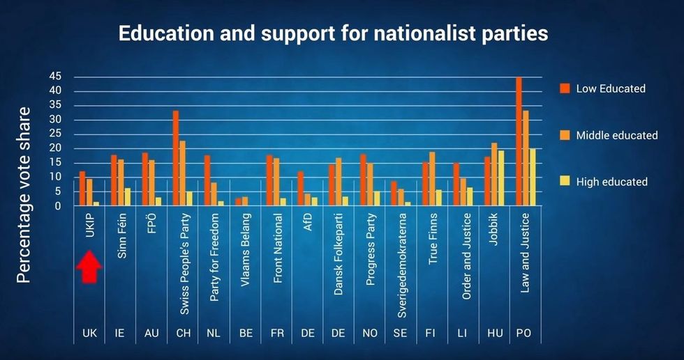 Fry also uncovered a link between education and nationalism, with 98 per cent of UKIP voters having a “limited education”.