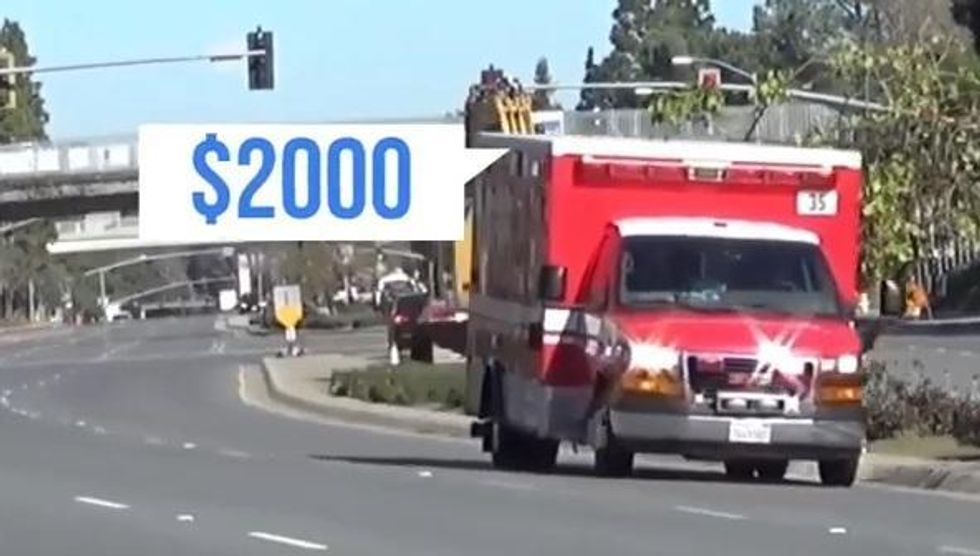 Fry starts off by saying that in the US, an ambulance can cost between $200 and $ 2000.