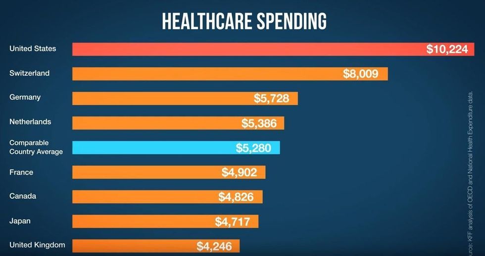 The US spends over double the amount of money per person on healthcare than the UK, despite Britain having a free national health service.