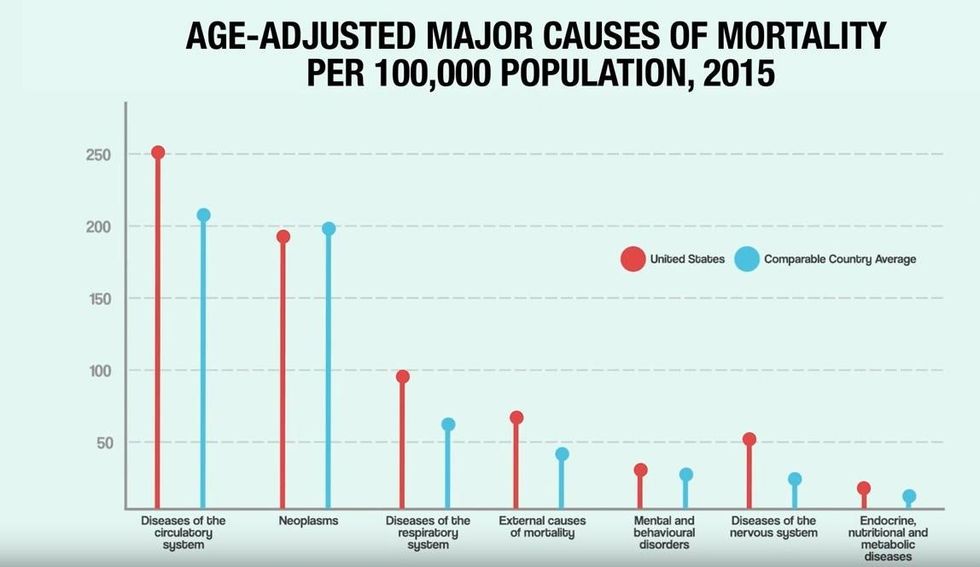 Despite this, many of the the leading causes of death worldwide are higher in the US than in other countries. At the same time, unnecessary services cost the US $210billion per year.
