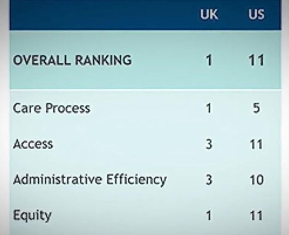 Next Fry uncovered research which suggests that the UK ranks far higher for Care and efficiency than America, despite the fact that Americans spend so much more on healthcare.