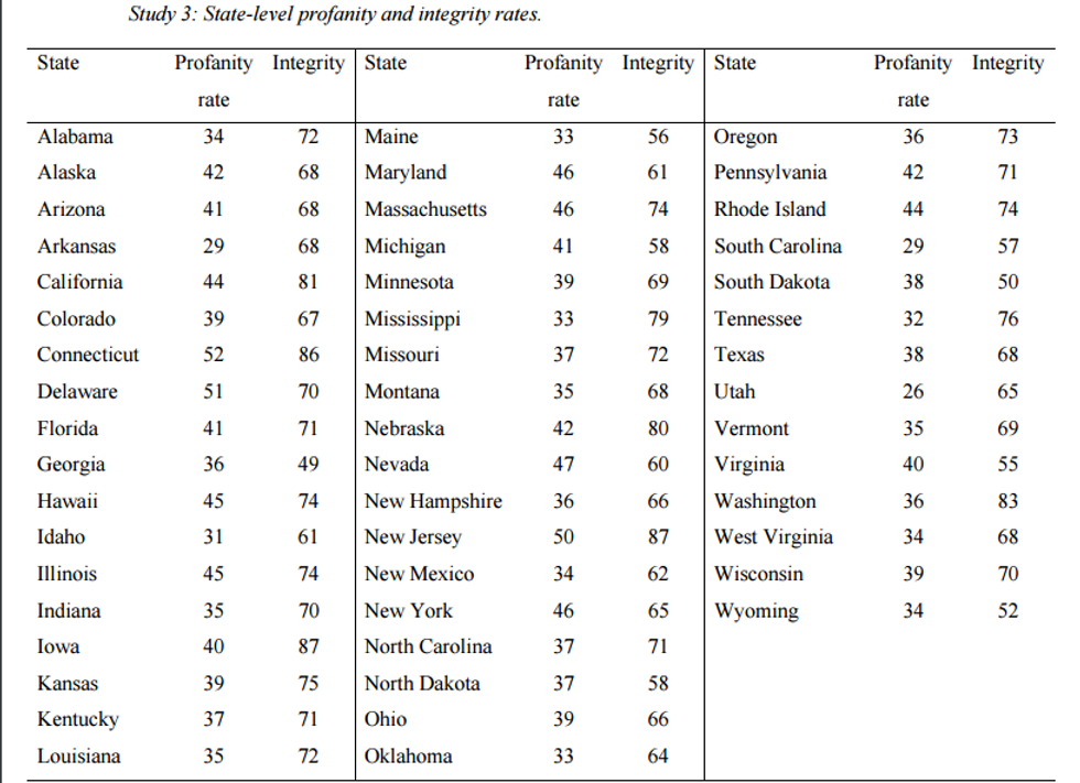Then, they used previous data to compare the integrity levels of US states with how often they swear – where they found the same conclusion.