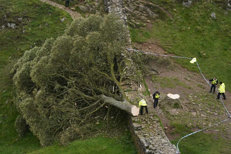The sycamore that stood for more than a century in a dip along the landmark wall built by the Romans from 122 AD was deliberately cut down overnight in September 2023, prompting a national outcry and a police investigation.