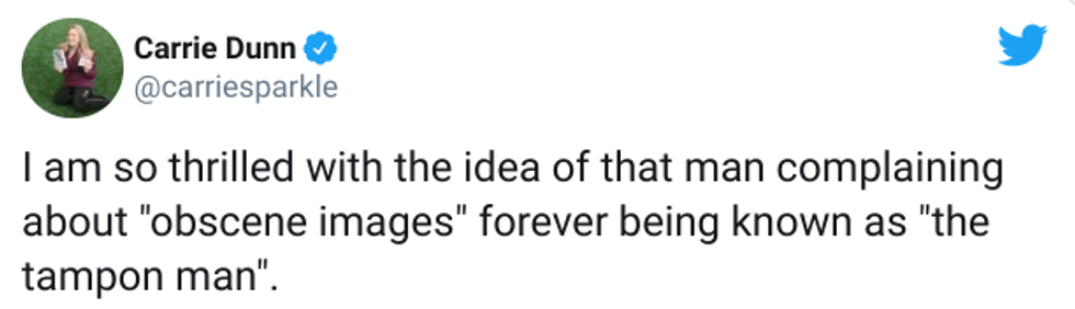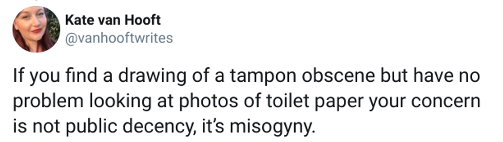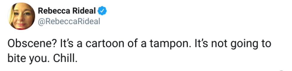 Naturally, people on Twitter thought this was, err, a little bit of an overreaction. After all, what’s obscene about a tampon cartoon?