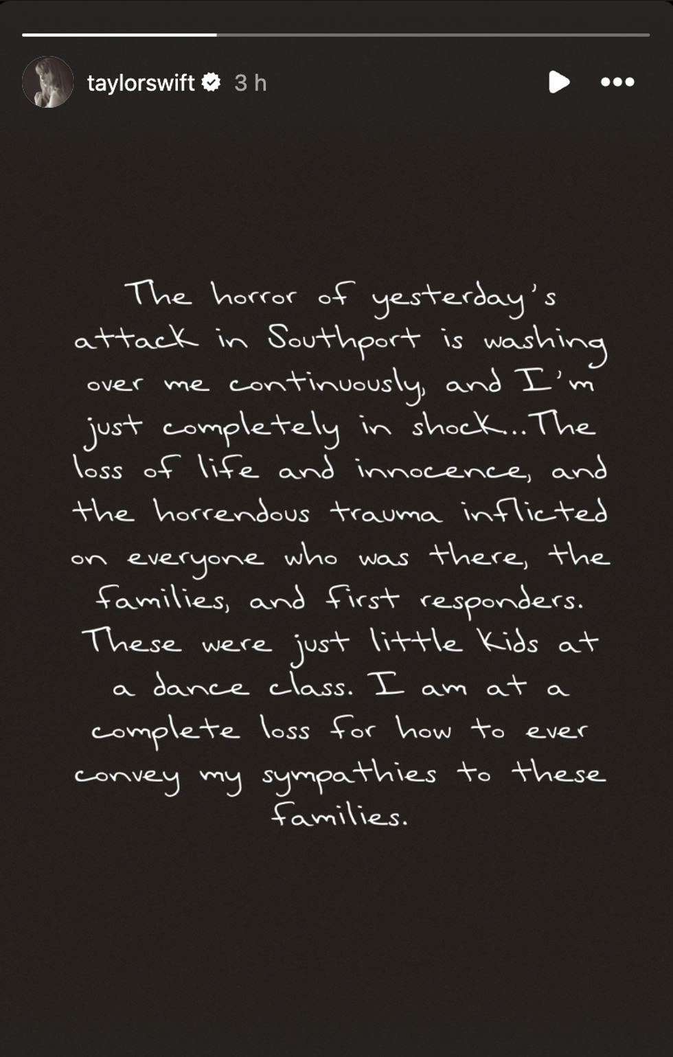 Swift herself took to Instagram to share her “horror” at what happened in Merseyside.