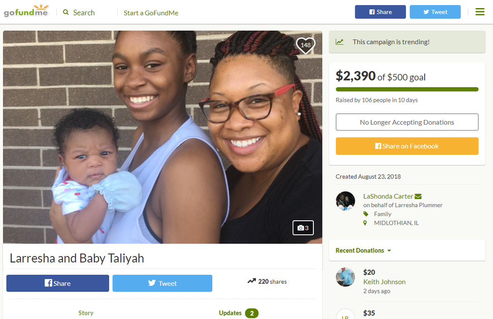 Following the job fair, Carter got Plummer to apply for Women, Infants and Children to get milk for the baby, and she started a GoFundMe page for additional help.