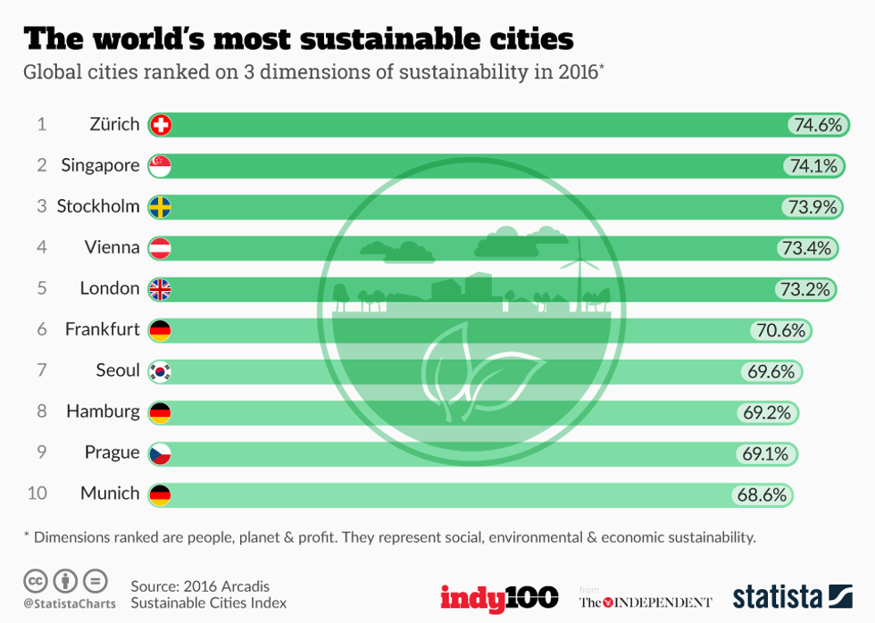 This information comes from Arcadis’ Sustainable Cities Index, which ranked 100 cities around the world for their performance across three pillars.