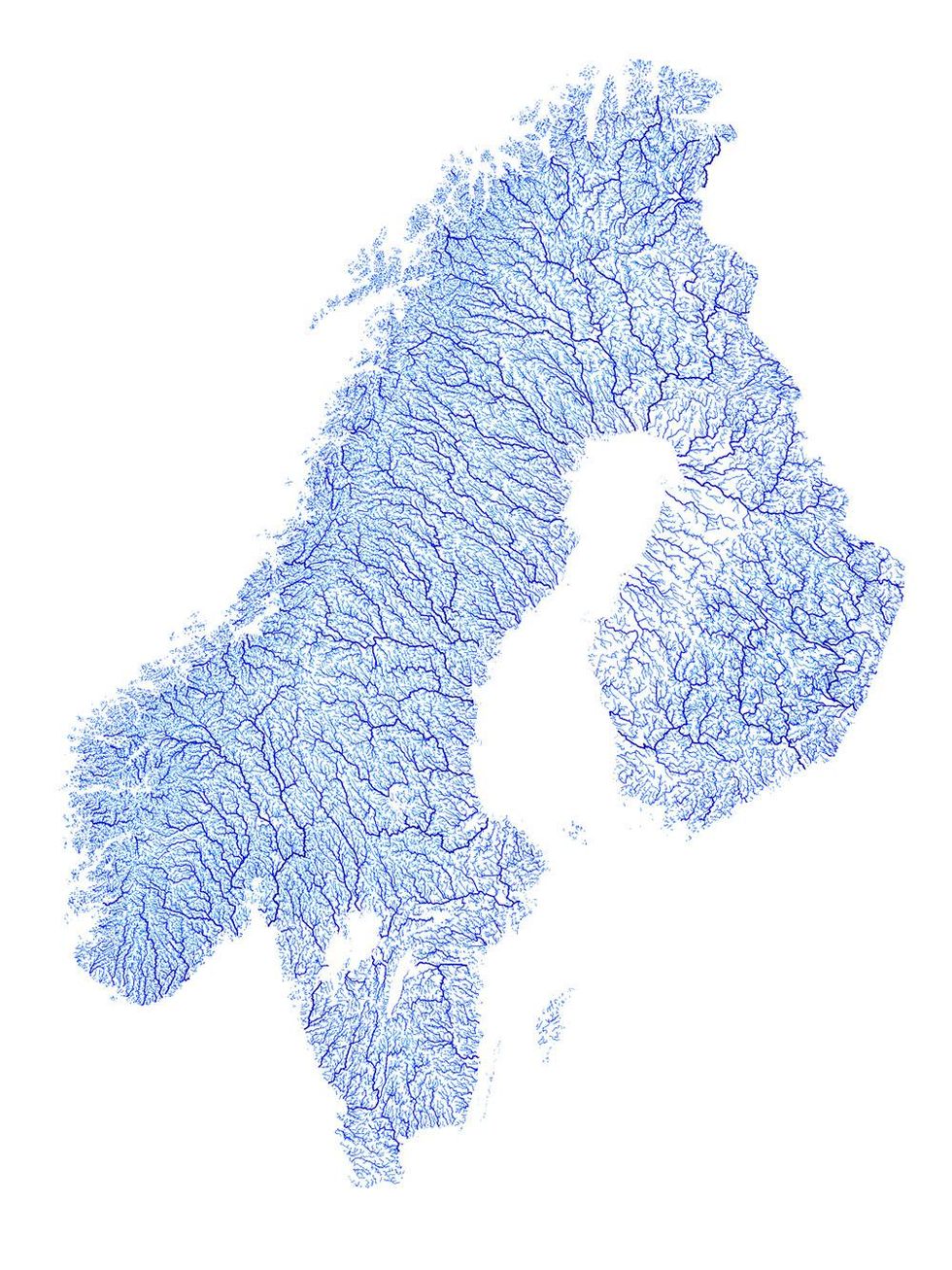 The rivers are weighted by Strahler hierarchies - ie the width of the lines is based on the number of tributaries each river has.