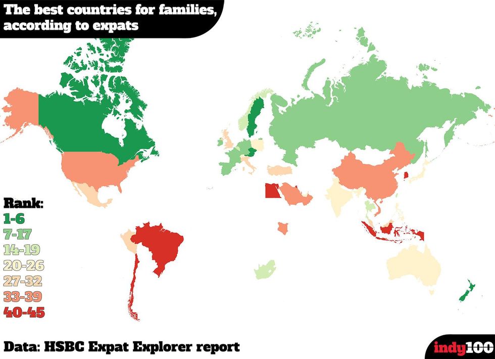 According to HSBC's ranking of expats' responses in the Expat Explorer report, the UK is the 29th best country for families.