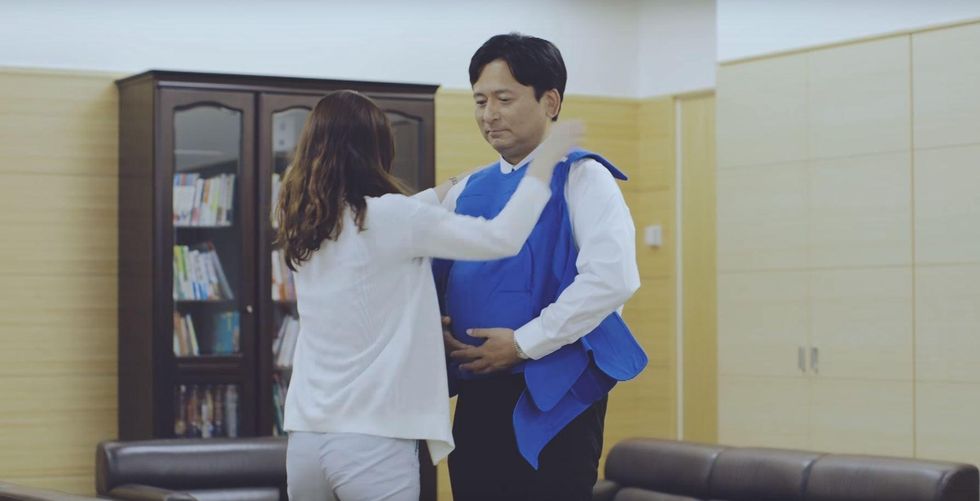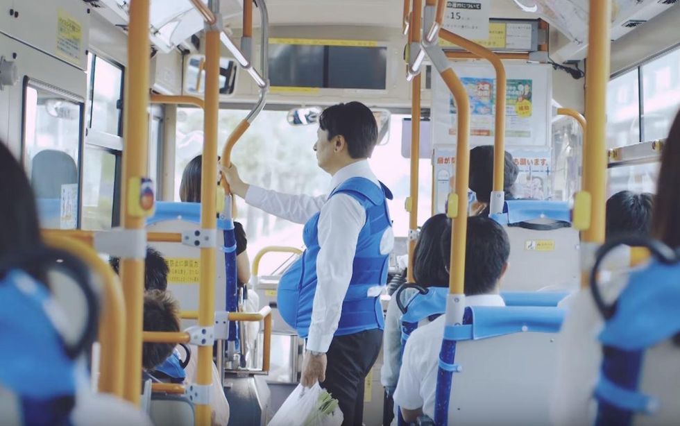 Three male Japanese politicians decided to wear a 16lbs pregnancy vest in a video campaign to raise awareness about pregnant women and the lack of work men tend to do around the house.