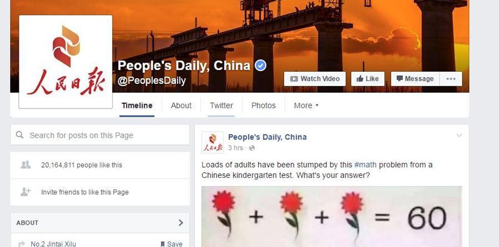 It appeared on Thursday on the English language Facebook page of the People's Daily, a Chinese newspaper. A caption with it read: