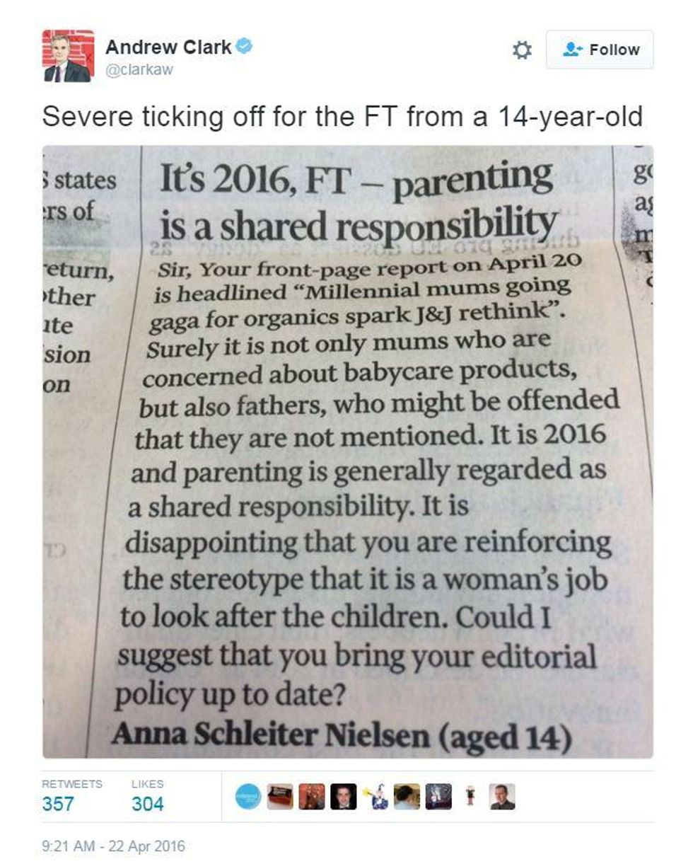 It may be one of the foremost business and economics newspapers in the world, but there's still a few things the Financial Times can learn - as proven by a 14-year-old girl this week.