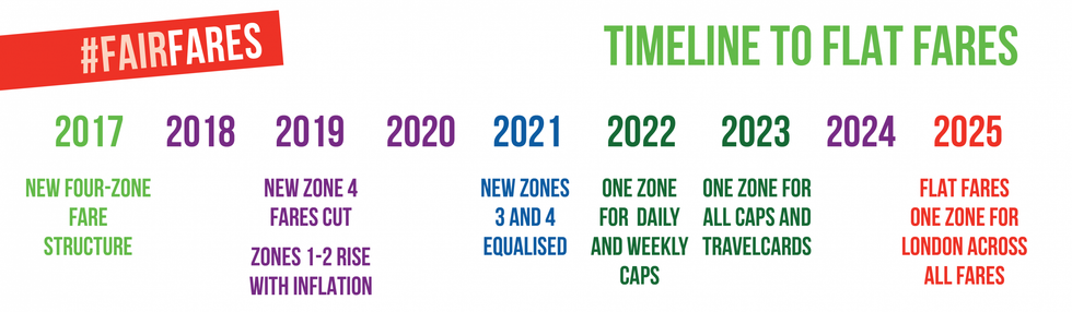 The '#fairfares' campaign would reduce London to just four travel zones from 2017, and introduce completely flat fares by 2025.