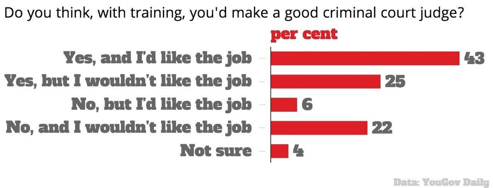 A new survey by YouGov Daily has shown 68 per cent of us think that with the proper training, that we'd be a good judge, compared to only 28 per cent who think otherwise.