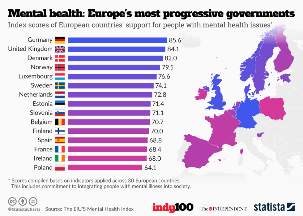 The Economist's Intelligence Unit keeps an index of 30 European countries which measured their policy commitments and initiatives around the subject.