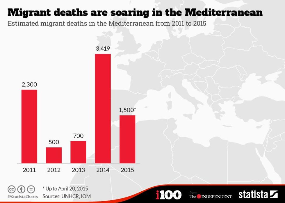 As our Statista chart from Monday ("the chart that shames Europe") showed, deaths of migrants travelling across the sea in a bid to reach Europe have soared this year. In fact, there have 1,500 deaths this year alone, which is 30 times higher than at the same stage in 2014 - the deadliest year on record.