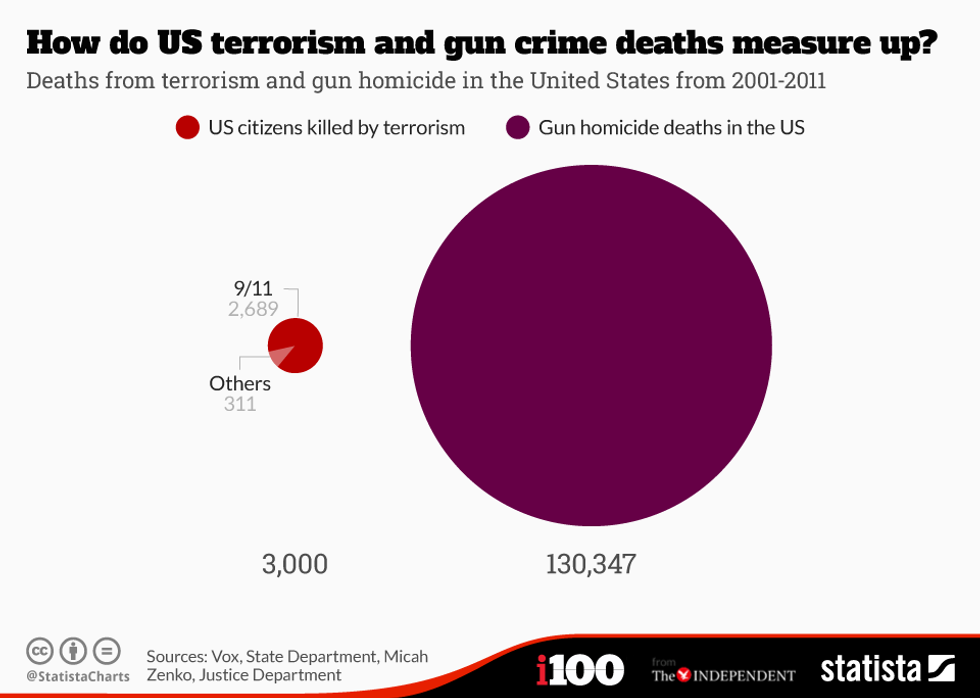 I would ask news organisations - because I won't put these facts forward - have news organisations tally up the number of Americans who’ve been killed through terrorist attacks over the last decade and the number of Americans who’ve been killed by gun violence, and post those side-by-side on your news reports.