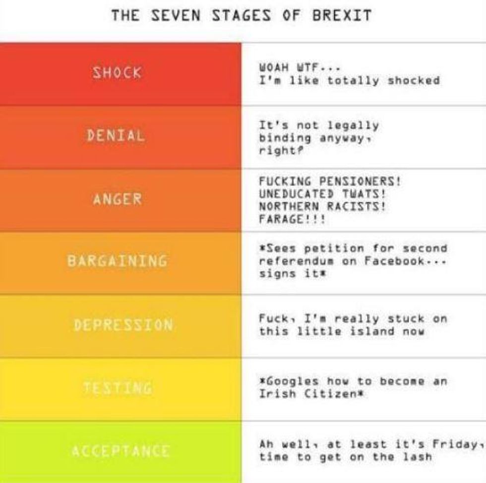 Luckily, some genius on the internet has come up with a guide to the seven stages of Brexit grief you might be going through at this difficult time.
