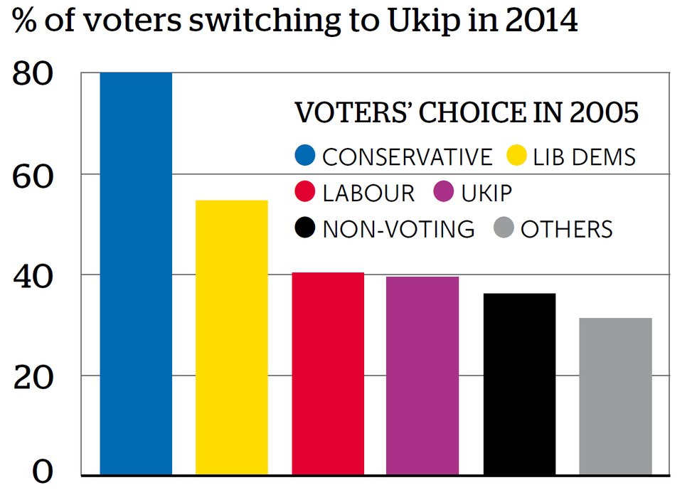 The project tracked 30,000 voters since 2005, and found that 80 per cent of Tory voters in 2005, who switched to Ukip in 2014, still voted for David Cameron's party in 2010.