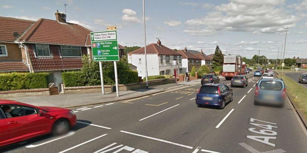 A picture which looks like it's taken from Google Maps of a junction on the A658 in West Yorkshire shows nearby towns and the airport supposedly signposted in Urdu as well as in English.