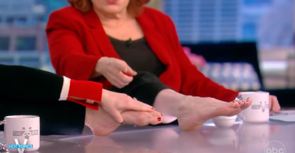 “Well, not everybody has gorgeous feet like I have,” Joy Behar then quipped before she showed off her own bare foot and plopped it on the table.