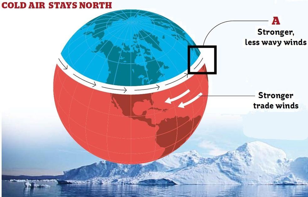 Research published in the Proceedings of the National Academy of Sciences found the loss of sea ice may be contributing to a wide north-south swing in high-altitude winds which in turn affects the distribution of warm and cold air.