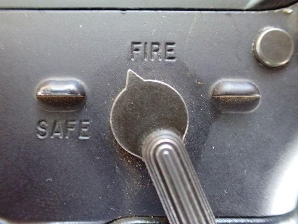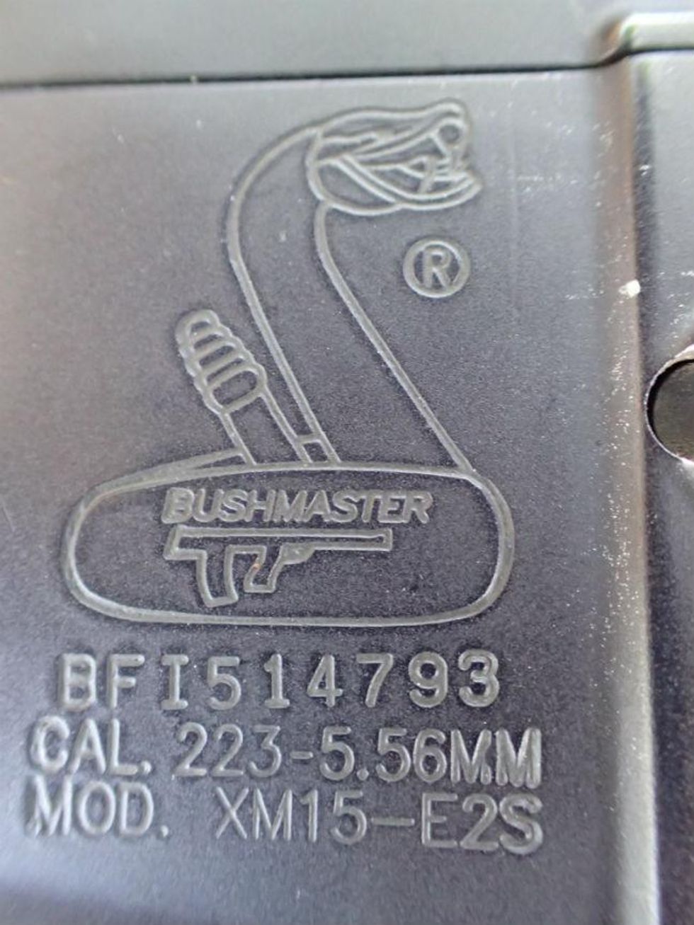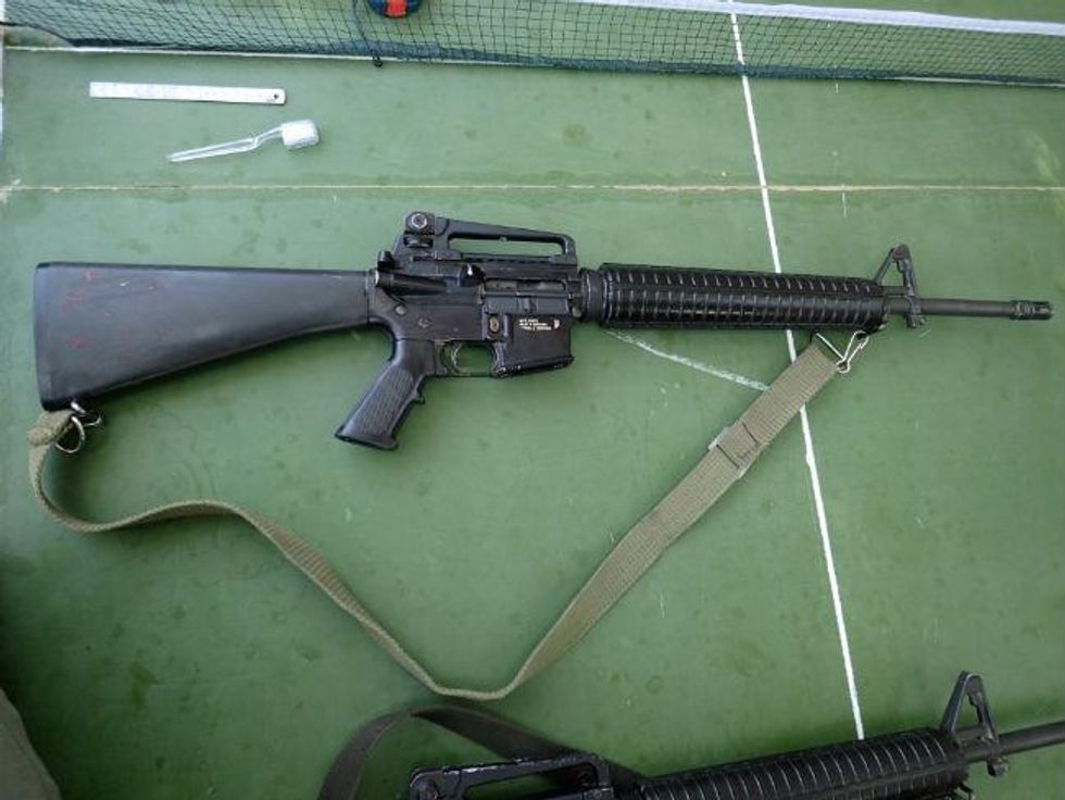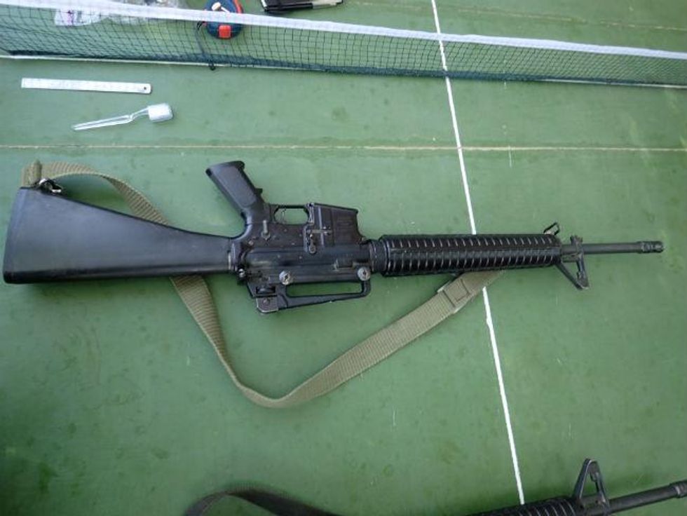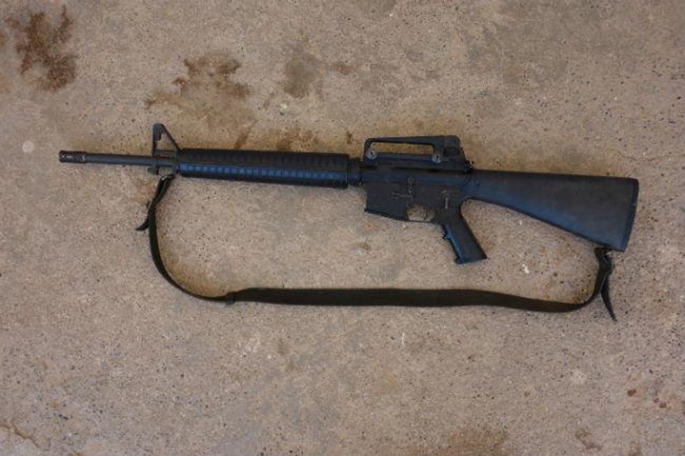 One US XM15-E2S 5.56 x 45 mm semi-automatic rifle, manufactured by Bushmaster Firearms International. Captured in the Sinjar Mountains, Iraq, on August 4.