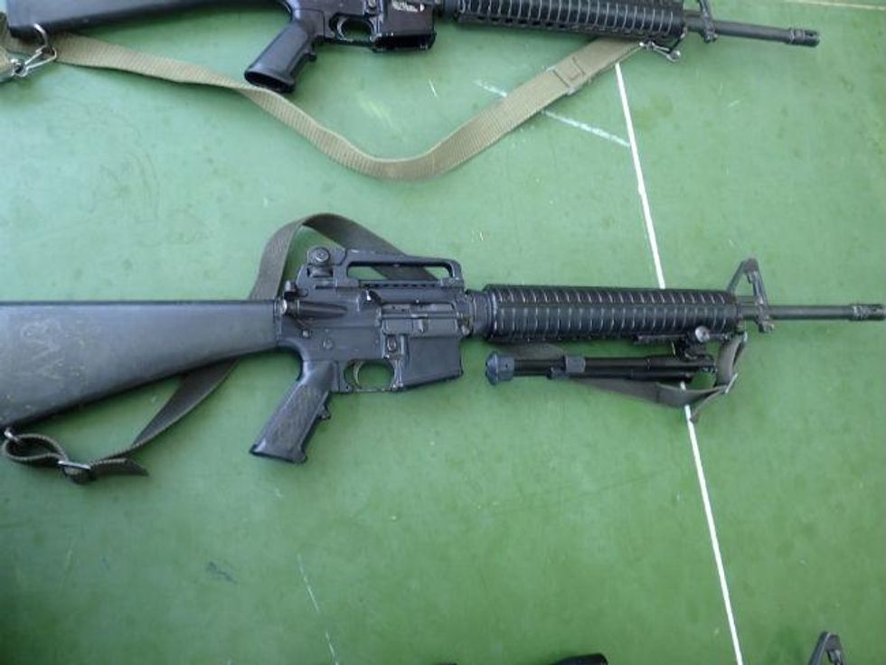 Three US M16A4 5.56 x 45 mm assault rifles, manufactured by FN Manufacturing. Captured in the Sinjar Mountains, Iraq, on August 4.