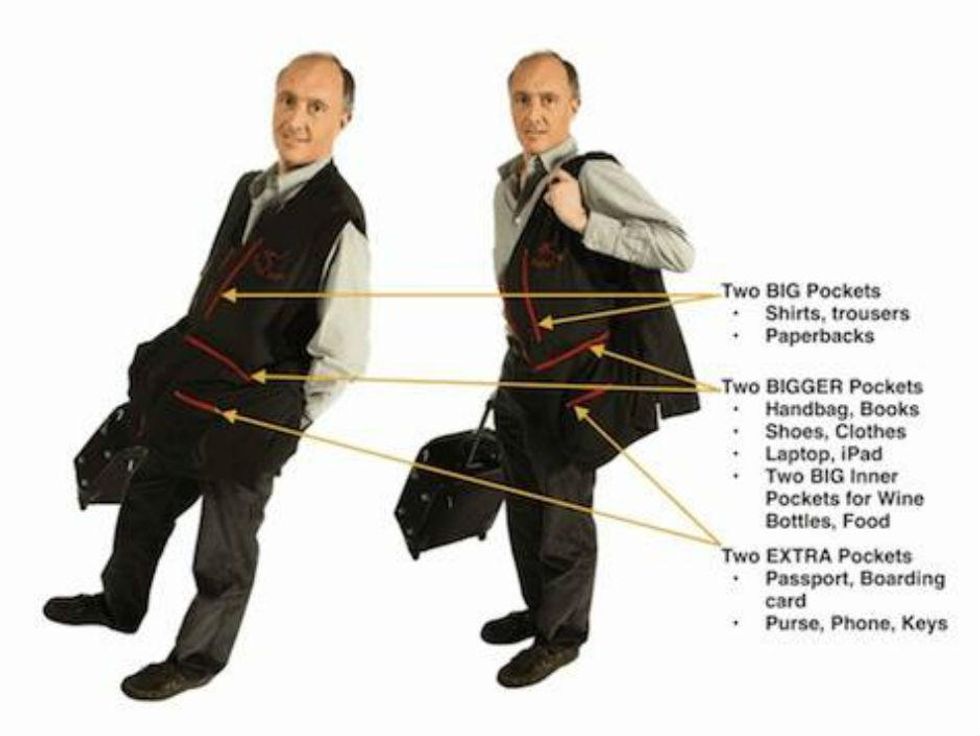 If you've already bought a suitcase that perfectly fits the overhead locker but you still feel you need extra capacity, why not invest in a "hand luggage jacket". All those extra pockets may not look trendy, but they sure are useful in skirting an airline's hand luggage rules.