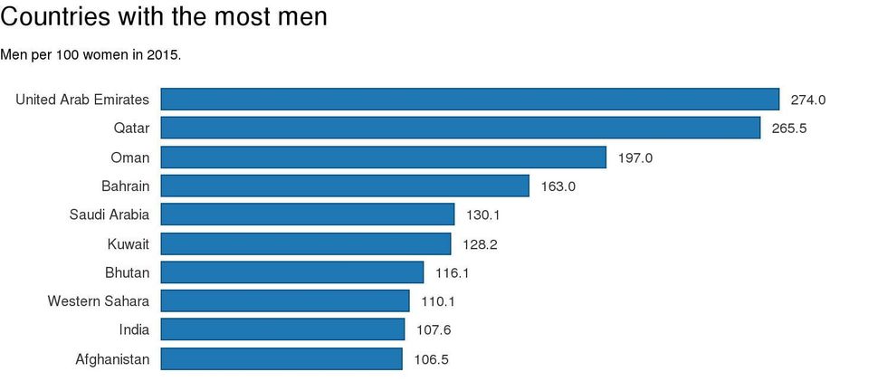 Within this the countries with the most male-dominated and female-dominated populations have been disclosed.