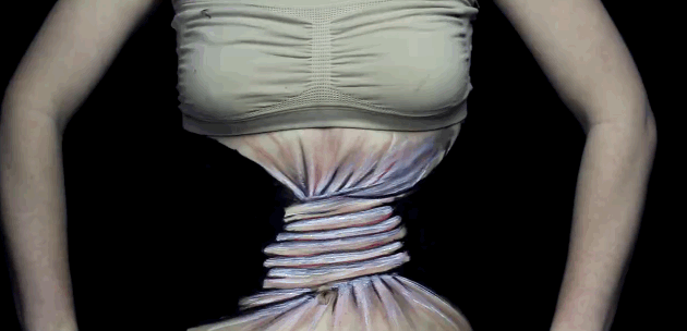 Using her own stomach as a canvas, Steel beautifully summed up how so many women across the world are made to feel in their own bodies: