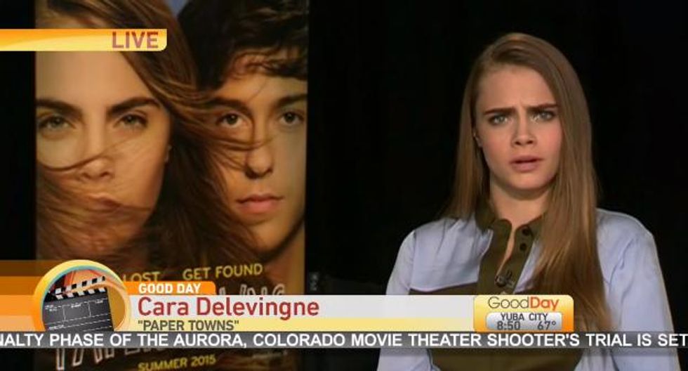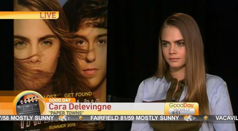 Cara Delevingne managed to take the awkward celebrity interview to a new nadir when she appeared on Good Day Sacramento to promote her new film Paper Towns on Tuesday.