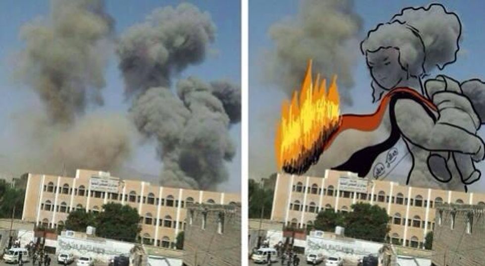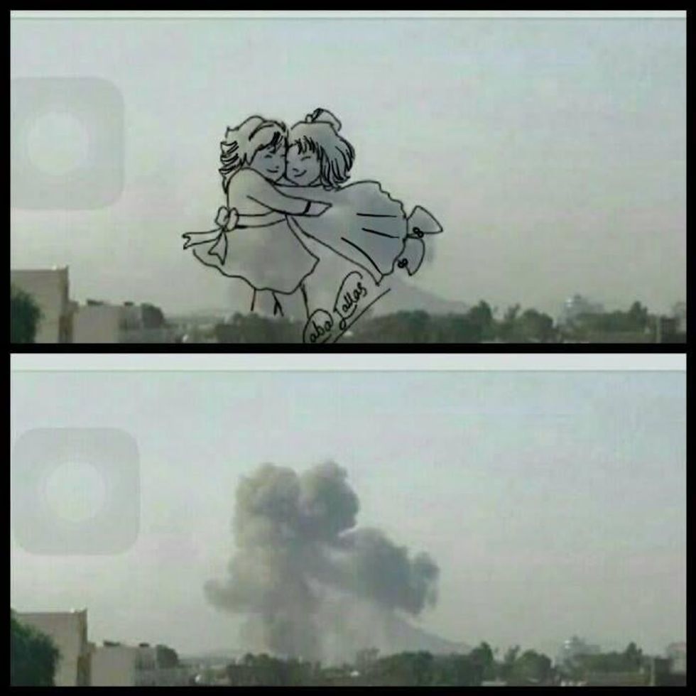 Jallas started to create her own images on her smartphone, etching peaceful and compassionate scenes onto photographs of the destruction hitting Yemen