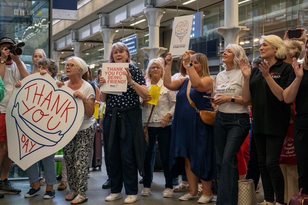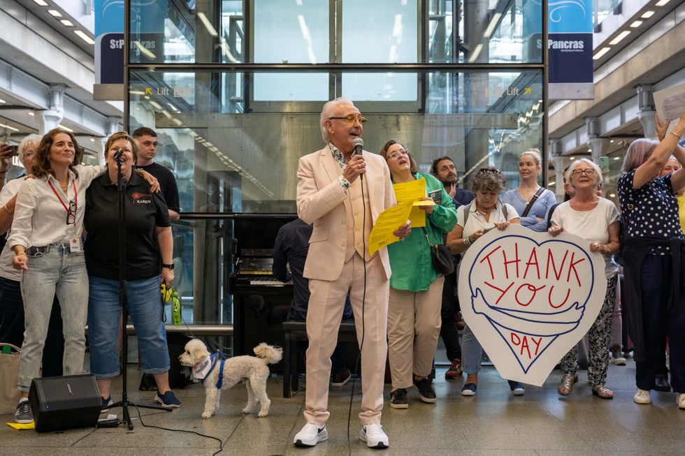 St Pancras travellers were treated to a surprise performance by singer Tony Christie, actor Vicky McClure and Our Dementia Choir on Thank You Day.