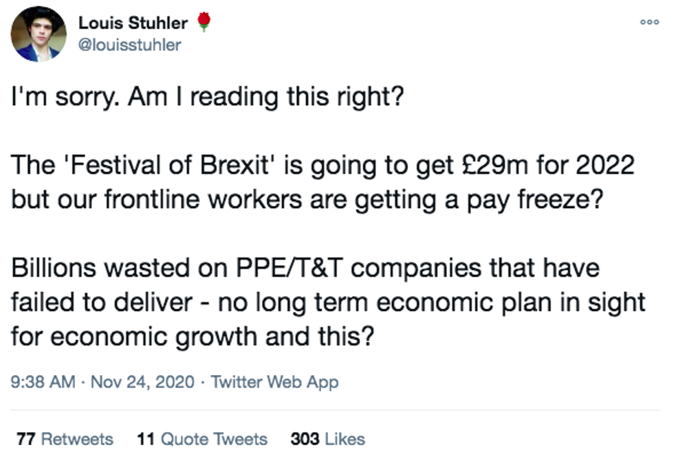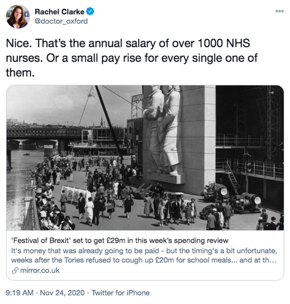 For instance, why is the government committed to spending on a festival, but not on a pay rise for the NHS staff who have battled against the pandemic?