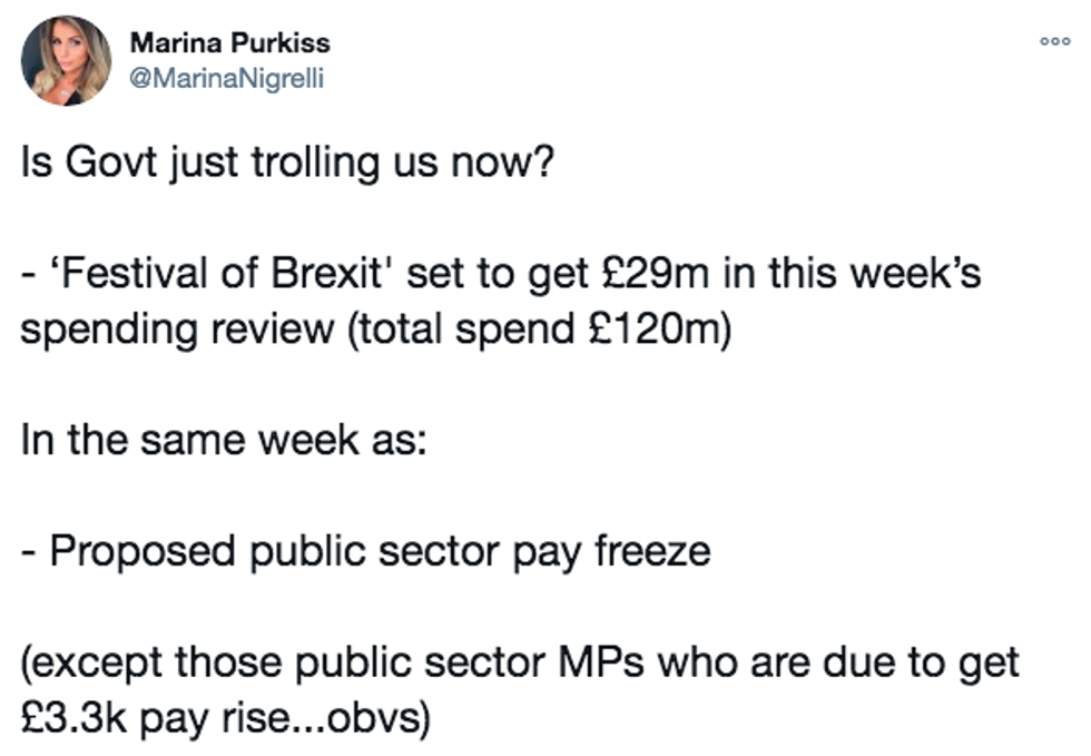 People are ridiculing the government for budgeting almost £30m for the ‘Festival of Brexit’ in the wake of a widespread economic hardship.