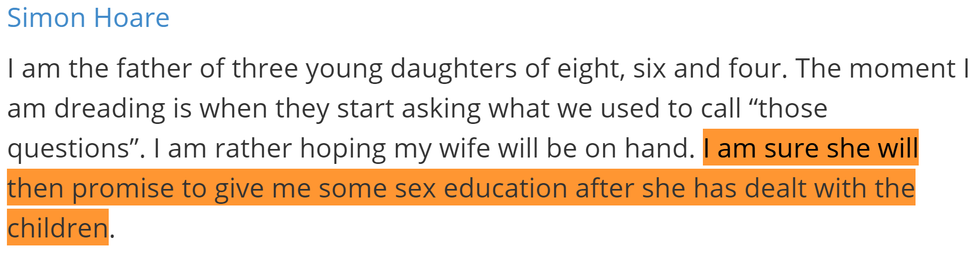 Well done Mr Hoare, for proving just how needed sex and relationships education really is.
