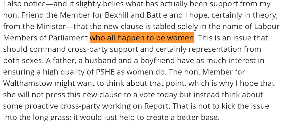 But then loses it completely by admitting that while he does agree that sex ed should be improved, the reason he won’t be voting in favour is because the bill was written by women.