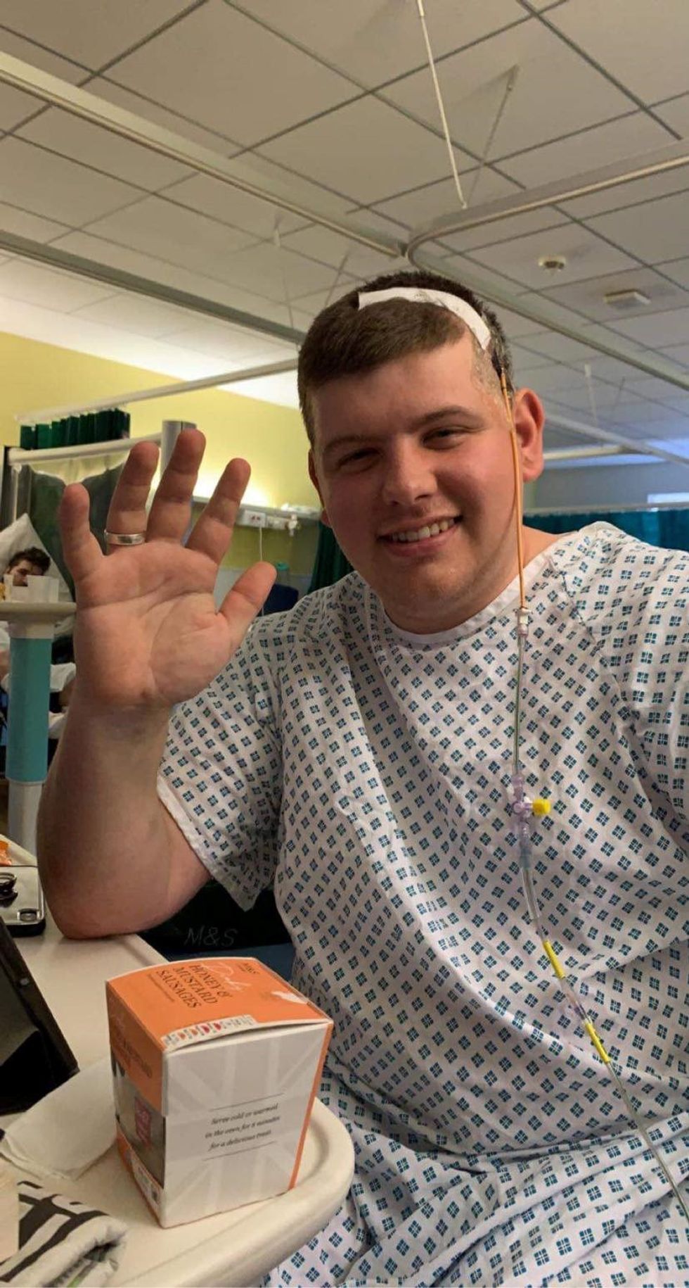 He had a biopsy of a left frontal tumour and an external drain was fitted which was later replaced with a Ventriculoperitoneal Shunt (internal drain) during a second operation.