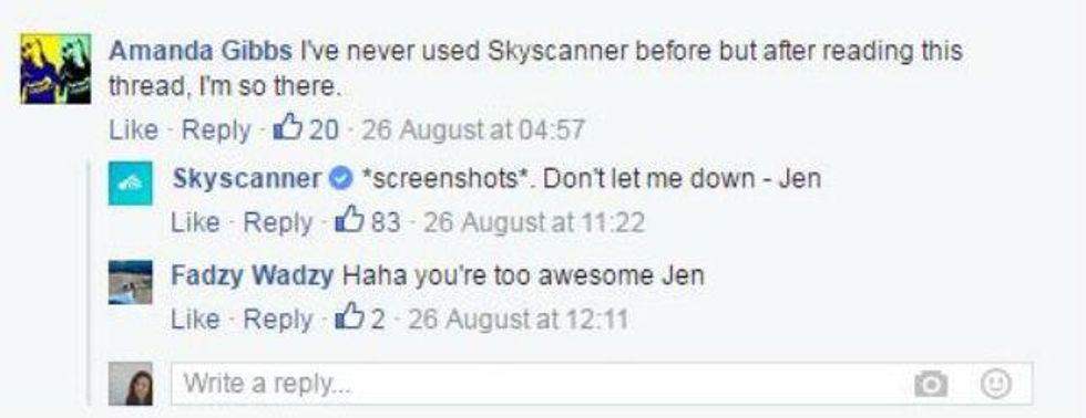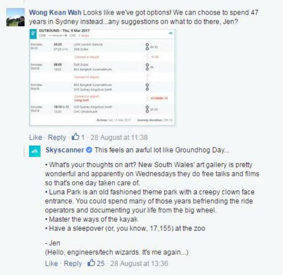 Suffice to say, Skyscanner should give her a bonus. Or a promotion. Or both.