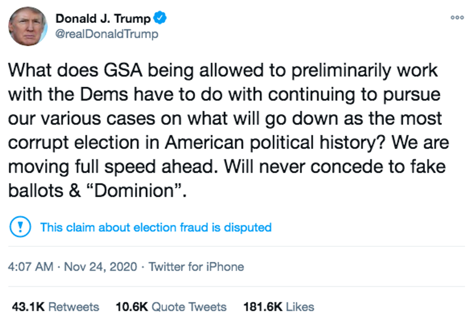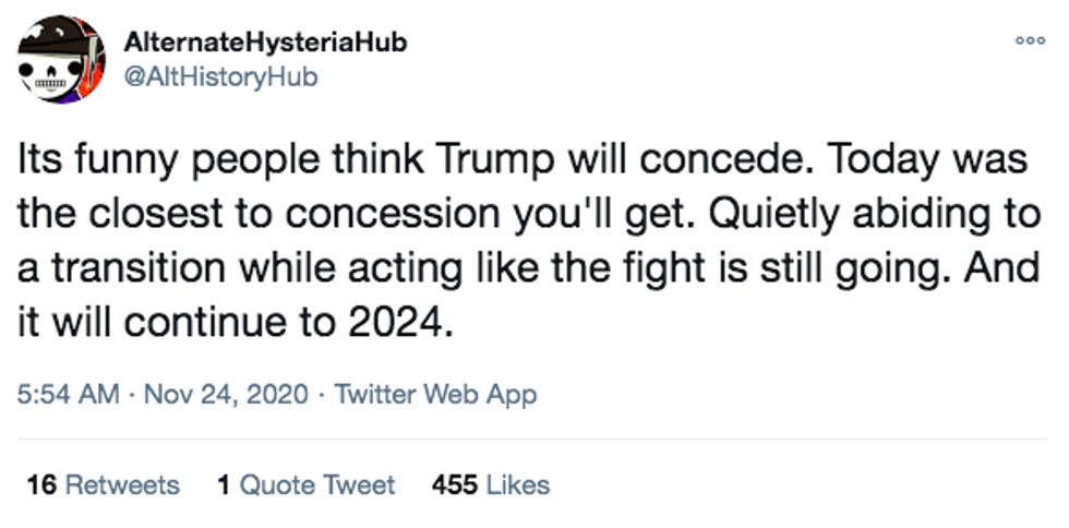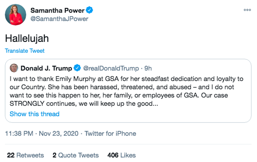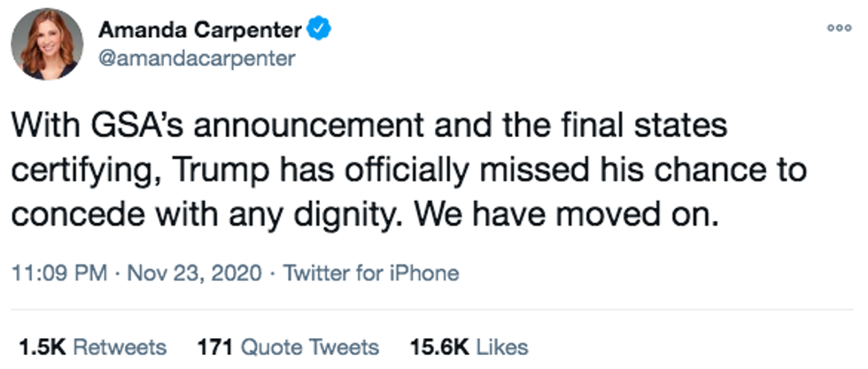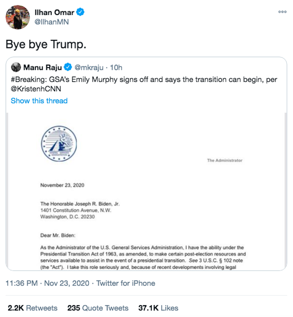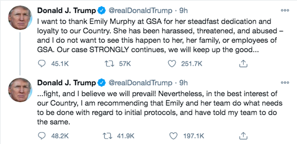 But although there was relief that the formal transition process can finally begin, Trump’s refusal to actually concede didn’t go unnoticed.