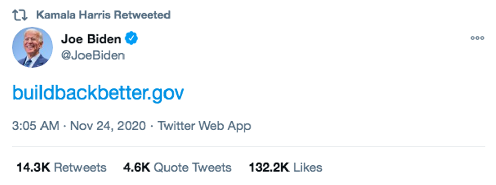 Biden and Vice President-elect Kamala Harris shared a link to their website, detailing plans for the transition as well as their priorities in office.