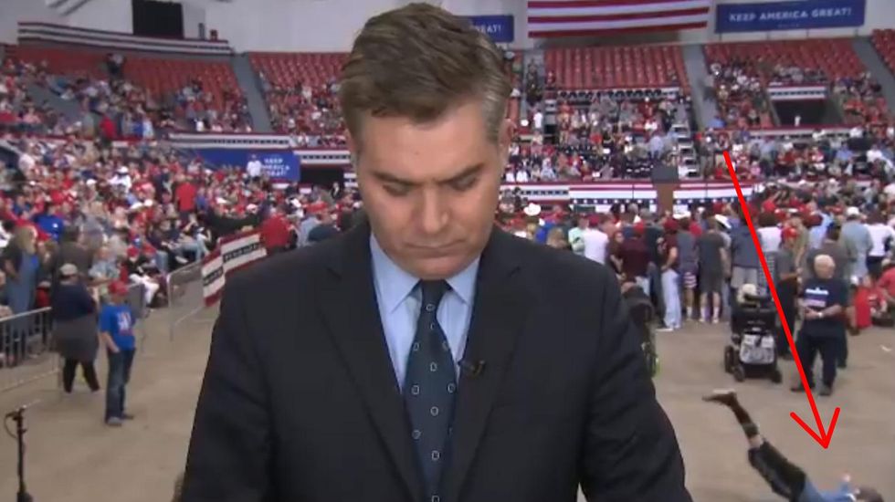 CNN covered the rally with reporter Jim Acosta at the helm, and the live feed shows a child perfectly executing the worm behind his shoulder.