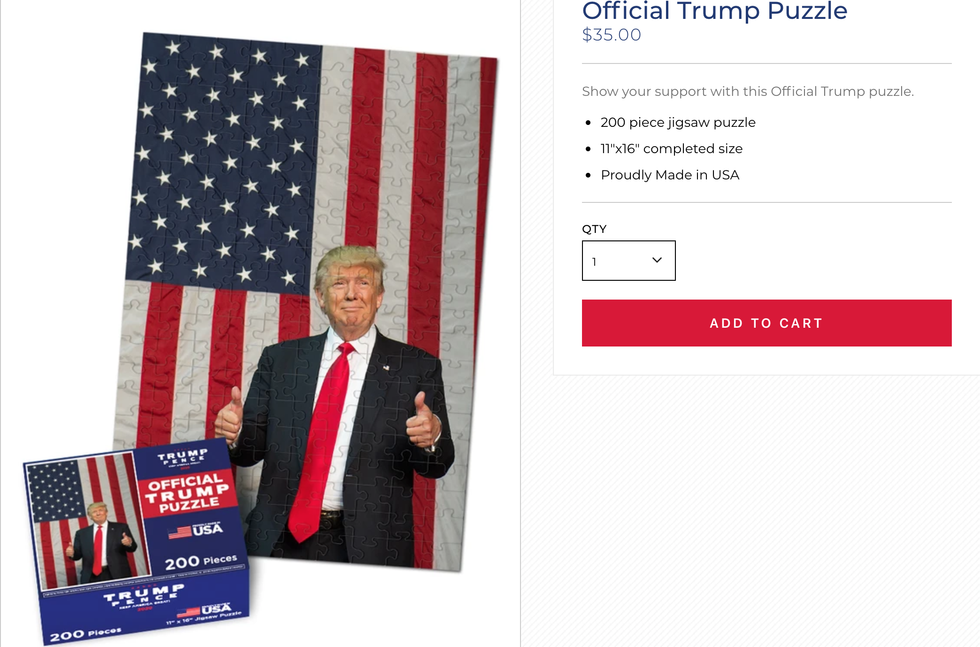 Proceeds from the 200-piece puzzle (which costs $35) will go to fund his 2020 campaign for re-election.
