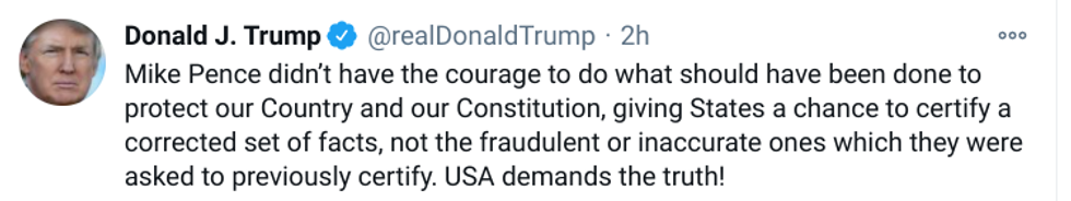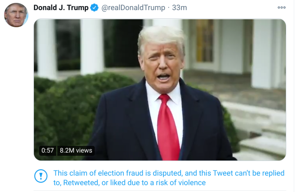 Before returning to post a video filled with the same lies and rhetoric which motivated his supporters to protest.
