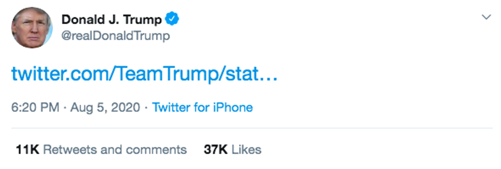 Of course, it's still fairly embarrassing for Trump that his campaign team received a temporary ban for sharing something he said. But it does still beg the question: if he had shared the video directly, would the president have received an unprecedented Twitter ban? A Twitter spokesperson reportedly refused to answer this question when approached by other outlets.
