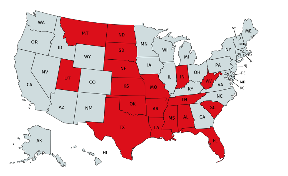 Texas, Alabama, Arkansas, Florida, Indiana, Kansas, Louisiana, Missouri, Mississippi, Montana, Nebraska, North Dakota, Oklahoma, South Carolina, South Dakota, Tennessee, Utah, and West Virginia, all of which voted for Trump have filed an amicus brief against Pennsylvania, Wisconsin, Michigan and Georgia which is attempt to overthrow the results in those states that Biden won.