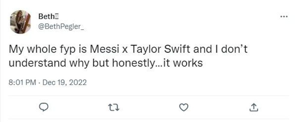 Some even noted how they don't follow football but are still getting Messi compilations to Swift's music on their TikTok feed - perhaps the footballer will gain some new fans?
