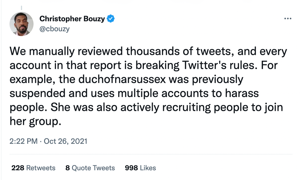 These Twitter accounts organized a "hate and disinformation campaign" against Meghan and Prince Harry by fabricating and disseminating "false narratives and altered photos of Meghan Markle on Twitter and other social media platforms."